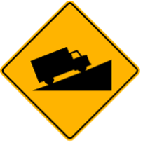 B. Warning sign for hill ahead. C. No trucks warning sign. D. Warning sign for truck ramp. |